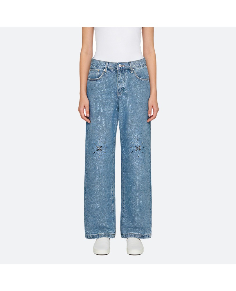 The design features a timeless straight-leg silhouette that flatters various body types, creating a relaxed and natural look. Distressed and washed details add a touch of modern street style, while the woven texture enhances depth and visual appeal.