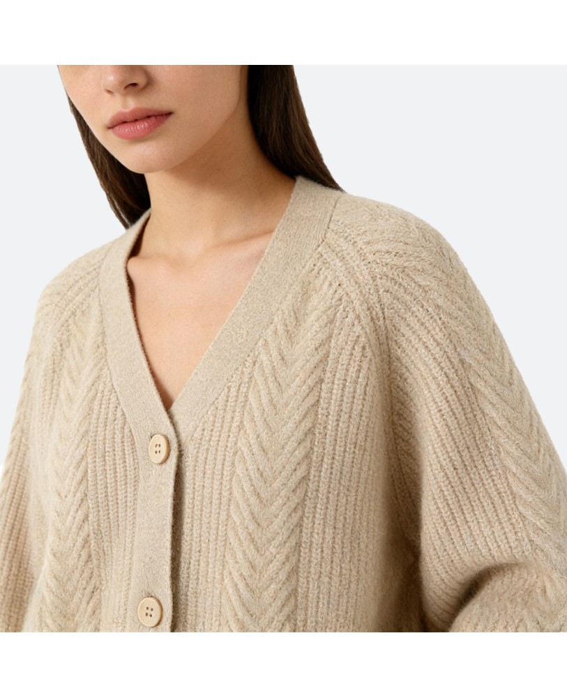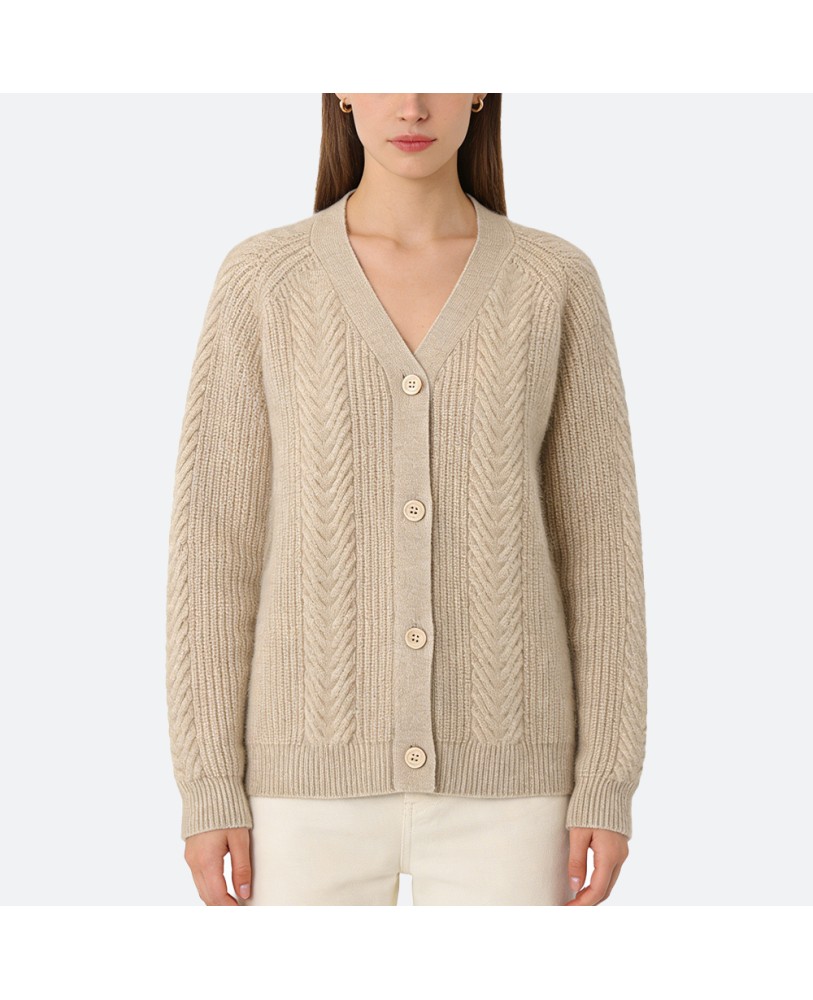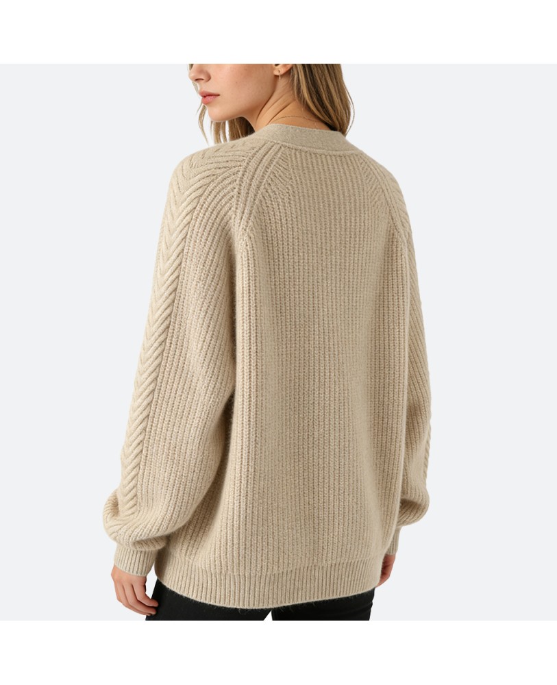 The soft, skin-friendly cashmere combined with a loose, comfortable fit allows freedom of movement. Ideal for both casual home wear and stylish outdoor layering, this cardigan exudes effortless elegance.