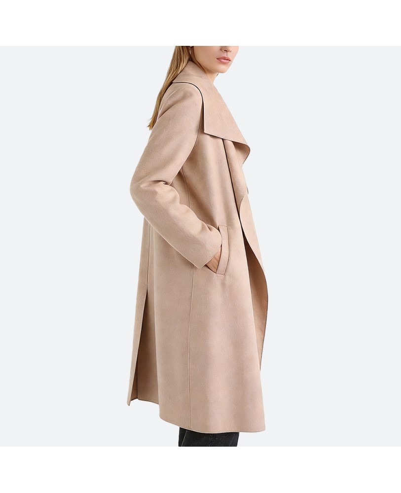 This Elegant Large Lapel Coat features a classic oversized lapel, offering smooth lines and a sophisticated yet soft silhouette. The waist belt is adjustable, accentuating the waist and providing versatile styling options, allowing you to maintain an elegant figure even in colder weather.