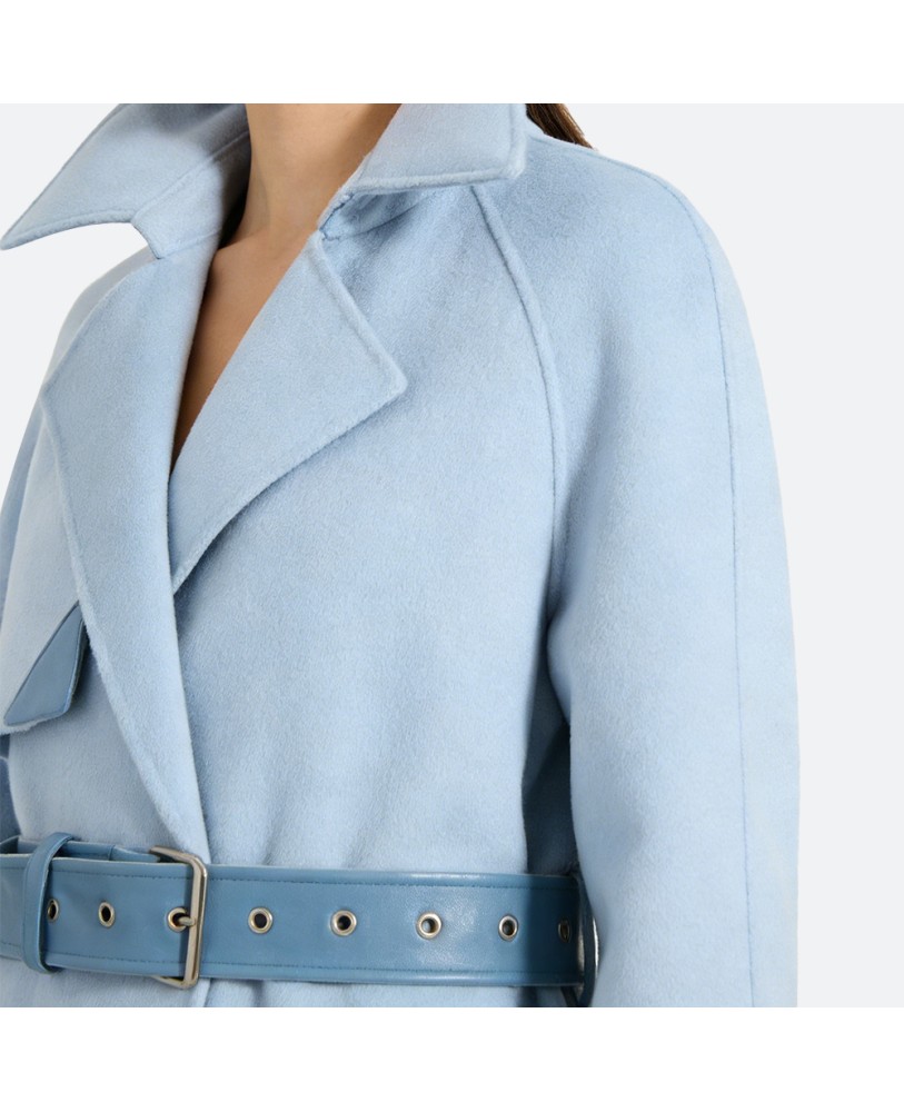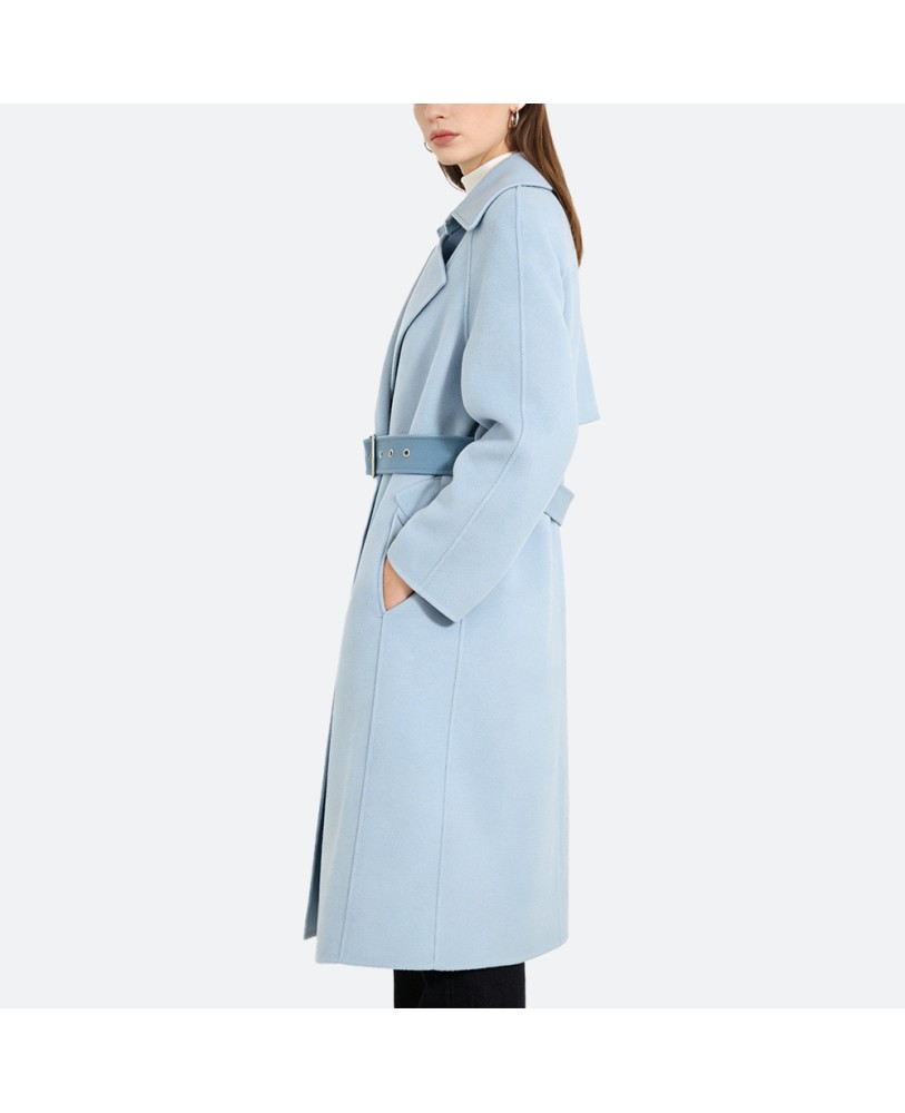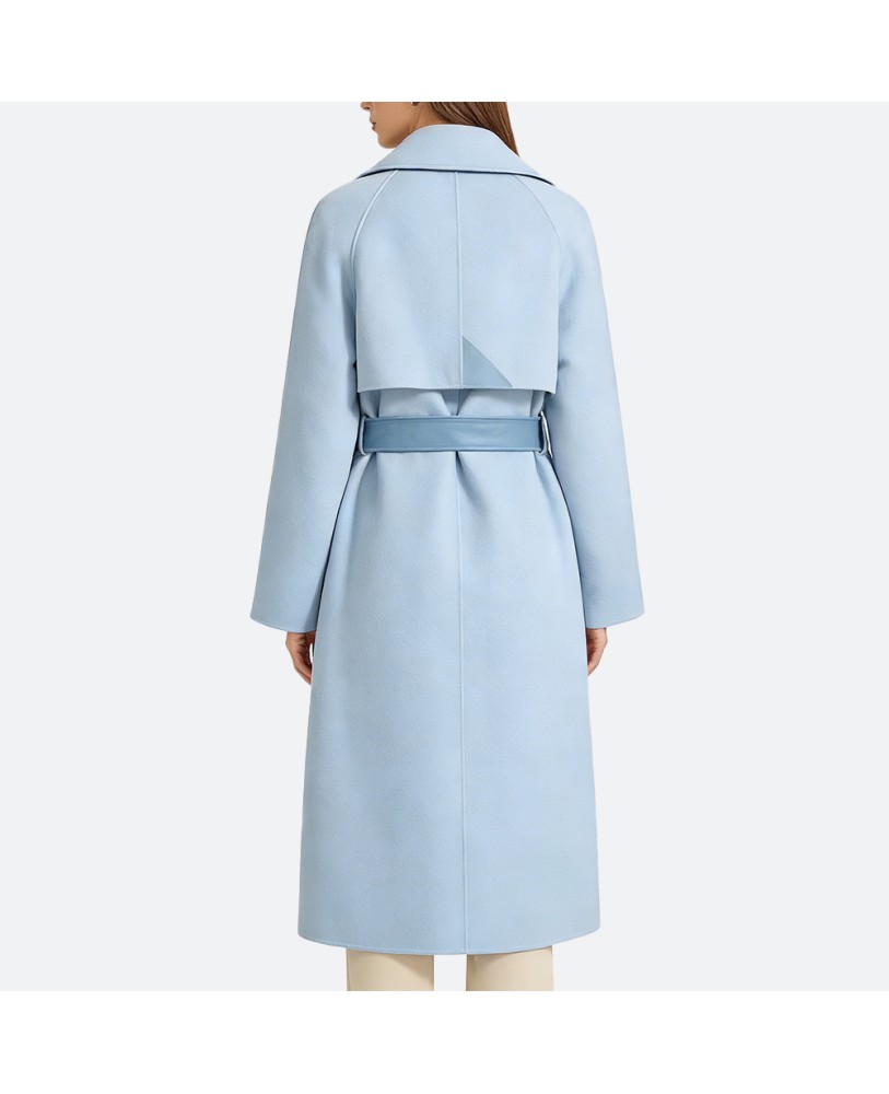 This double-layer wool coat embodies a minimalist and elegant design. The delicate slim belt defines a soft silhouette, highlighting feminine charm while ensuring a natural, comfortable fit. Crafted from sustainable cotton/polyester blended fabric, it is both eco-friendly and durable, providing lasting quality for everyday wear.