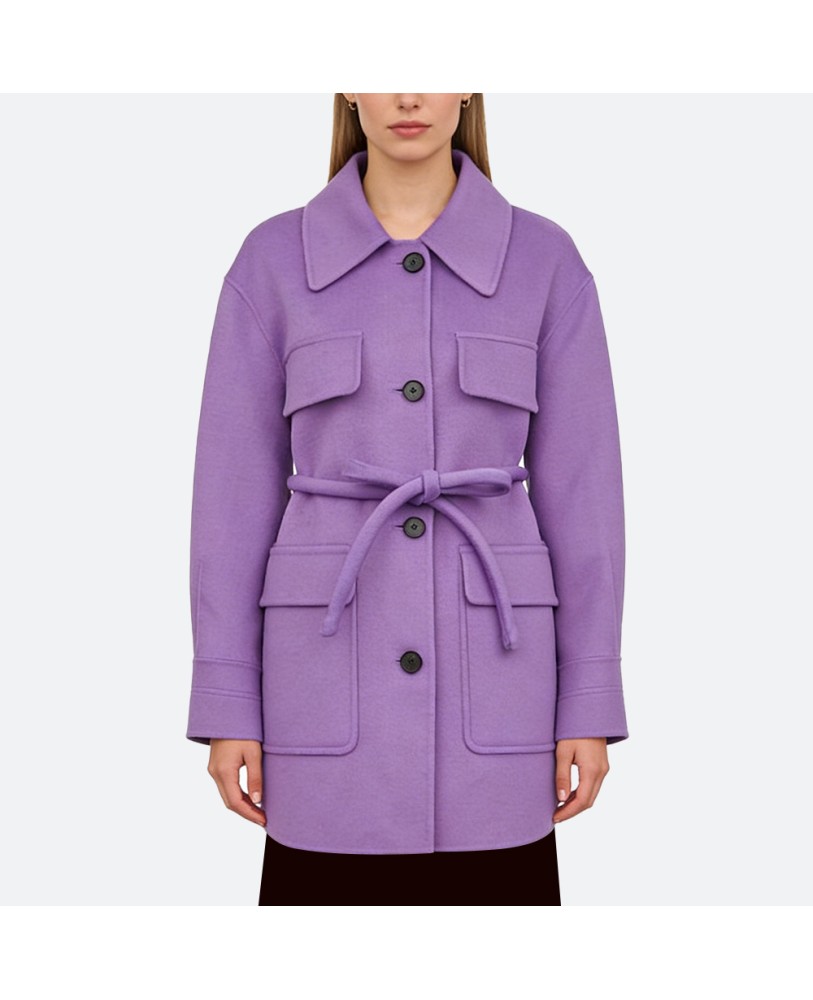 This wool short coat is crafted from sustainable lambswool, offering a soft and delicate texture that combines comfort with eco-conscious style. The refined woven texture and elegantly relaxed tailoring create a subtle yet sophisticated look, perfect for both everyday workwear and casual outings.