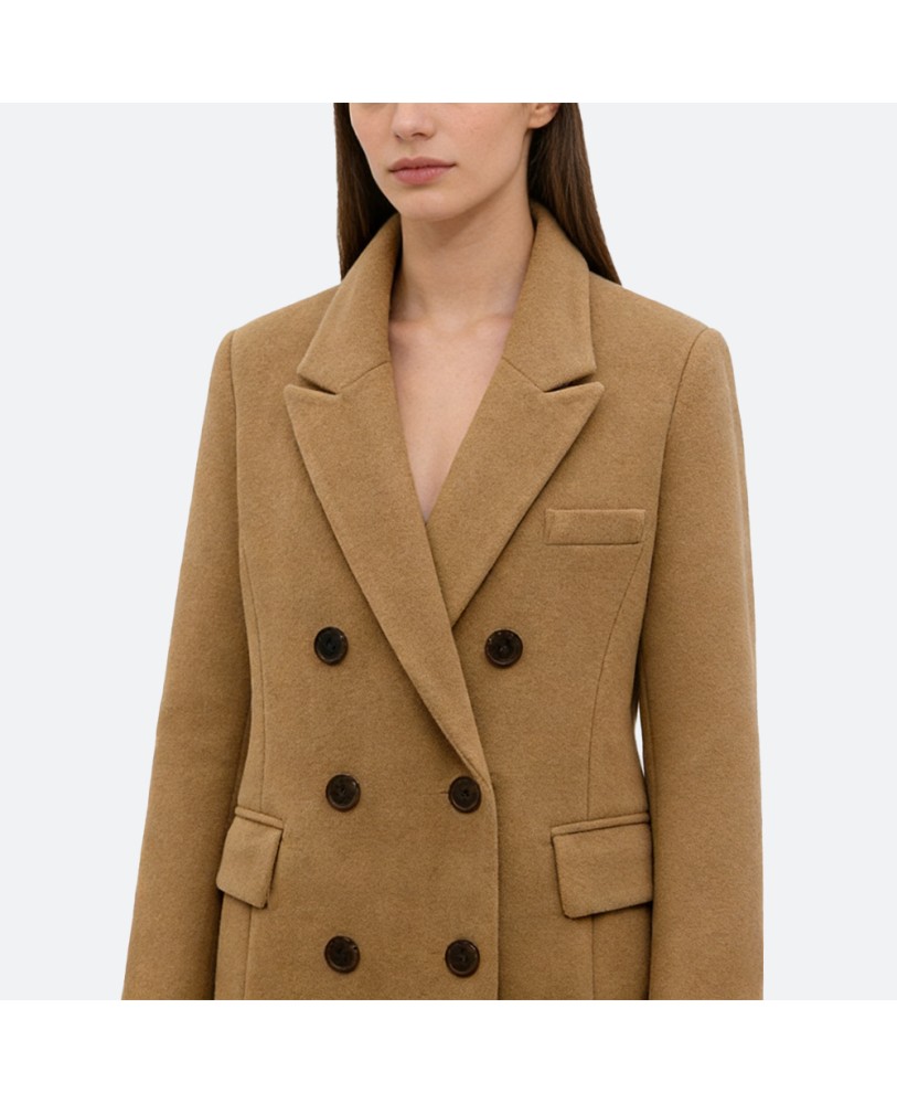 This loose tie-waist wool coat perfectly blends vintage elegance with modern sustainability. Made from a blend of sustainable wool and viscose, the fabric is soft to the touch, durable, and environmentally friendly.