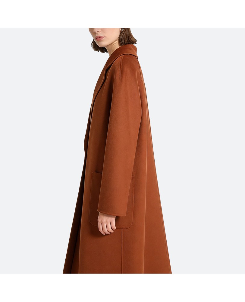 This reversible long wool coat is crafted from high-quality cashmere, offering a soft and delicate touch with excellent warmth and comfort. Its exquisite craftsmanship exudes a luxurious feel, making it perfect for both everyday wear and formal occasions, showcasing an elegant sense of style.