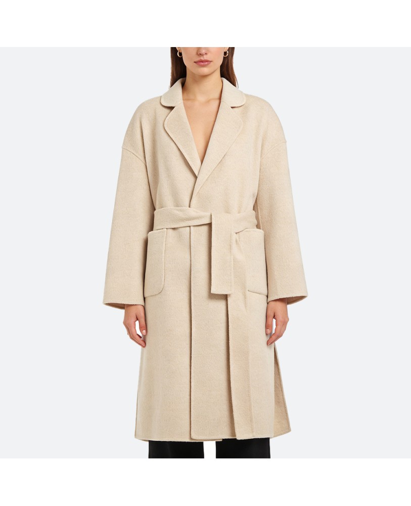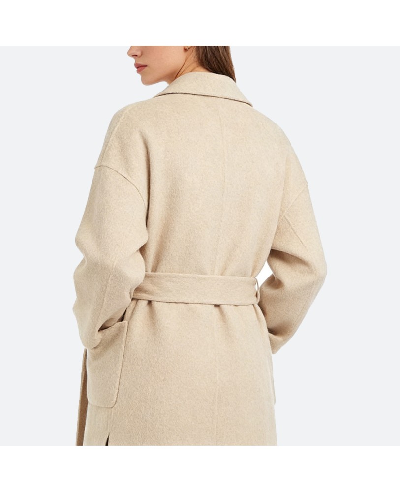 This belted alpaca wool coat is crafted from 100% pure wool, offering a soft, skin-friendly touch with excellent warmth and an elegant texture. Its longline silhouette creates a refined yet flowing look, perfect for both daily commutes and weekend outings, effortlessly conveying a sophisticated aura.