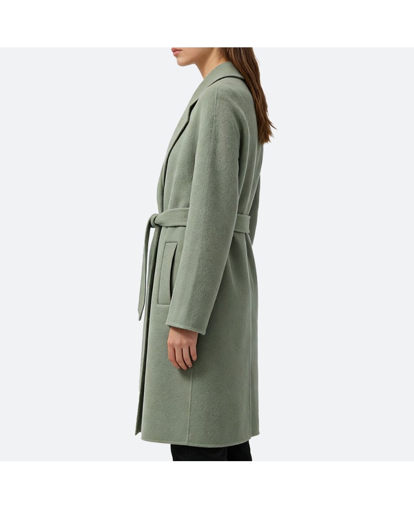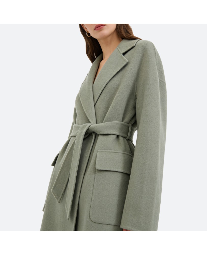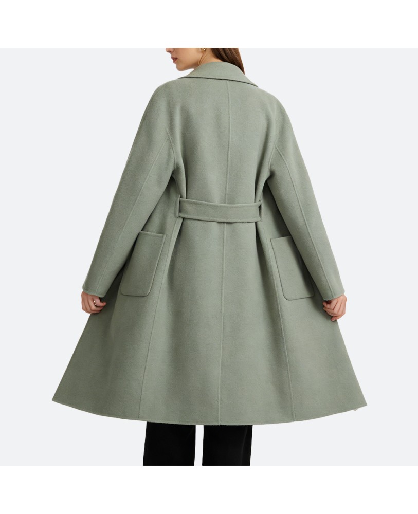 The coat features a refined, flattering cut that balances comfort and silhouette, with a moderately relaxed fit that drapes naturally. Whether paired with skirts or trousers, it exudes sophisticated charm.
