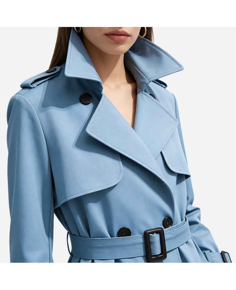 The overall design balances simplicity and elegance, with thoughtful details that highlight feminine grace. Whether worn alone or layered over other pieces, this trench coat helps you create a polished and stylish look with ease.