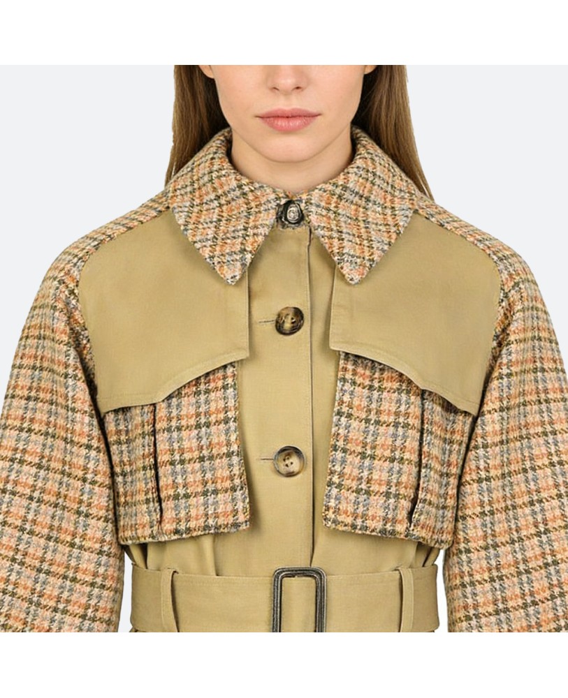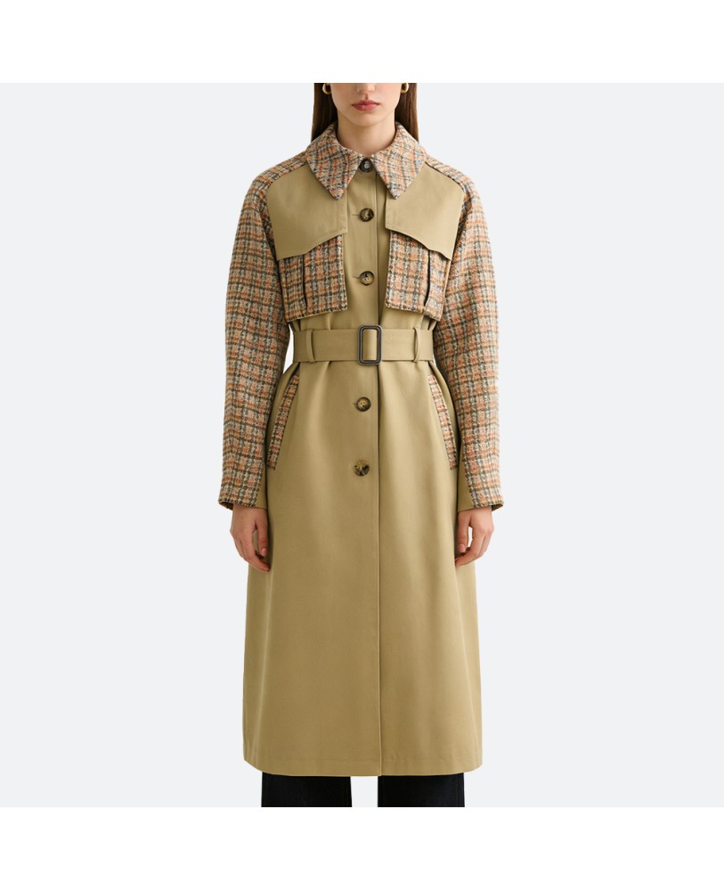 Plaid Patchwork Women’s Trench Coat