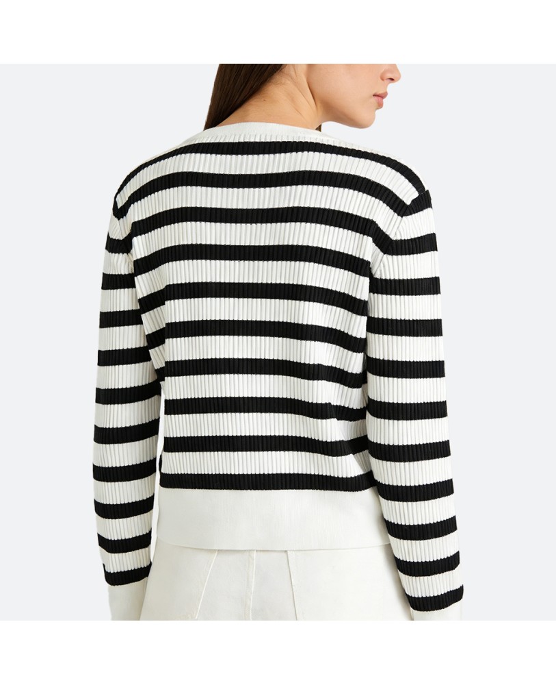 This women’s striped knit cardigan combines modern style with everyday comfort, showcasing a simple yet elegant urban look. Designed with a classic open front and delicate button closure, it’s easy to wear and adds versatility to your outfit.