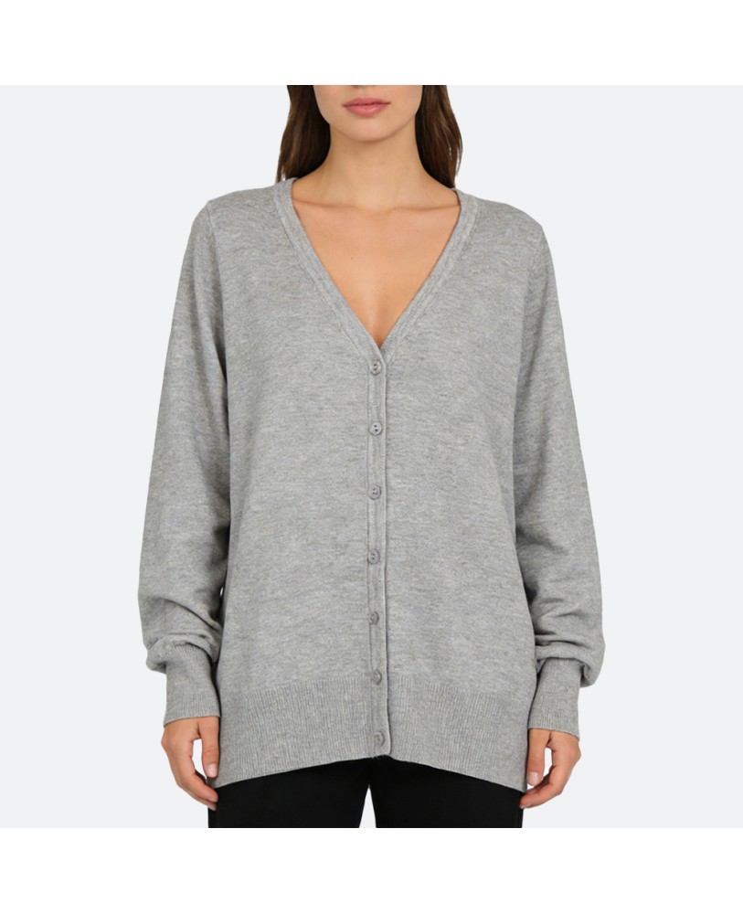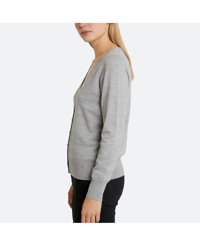 This grey knitted cotton cardigan is crafted with 12GG knitting, offering a soft and comfortable feel against the skin. Made from a cotton-polyester blended fabric, it is breathable, durable, and resistant to pilling, keeping it looking neat even after long-term wear.