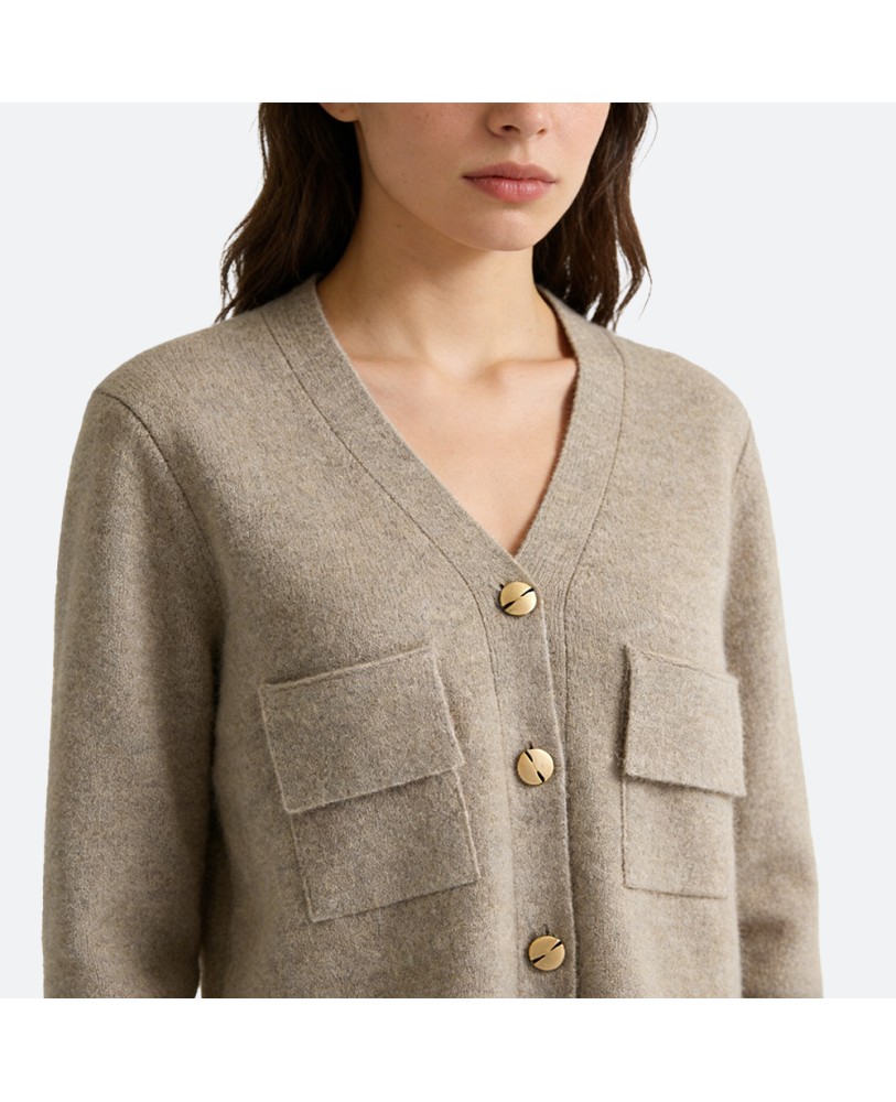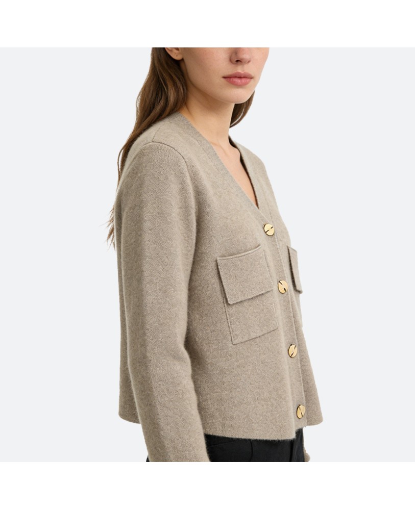 Crafted from 100% pure cashmere, this cardigan offers an exceptionally soft and luxurious touch against the skin. The natural warmth of cashmere makes it an ideal companion for chilly winter days.