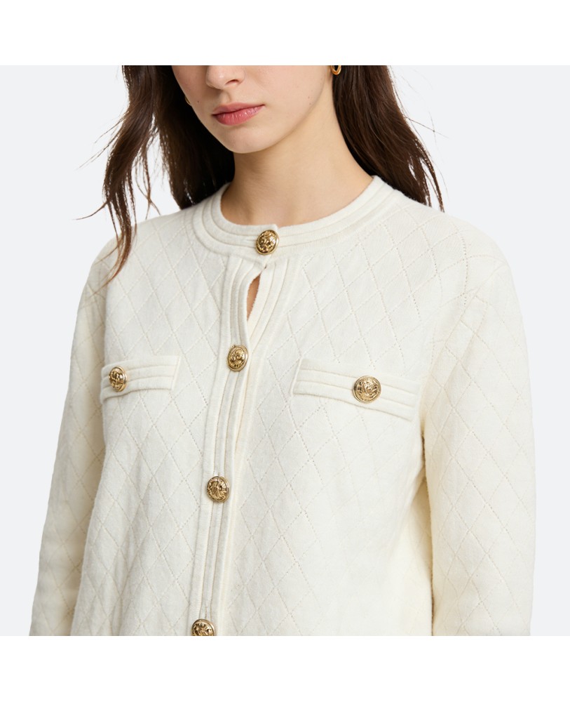 Meticulously knitted for a smooth and even finish, this cardigan is durable and long-lasting. The reinforced neckline, cuffs, and hem prevent deformation, ensuring the piece retains its shape over time.