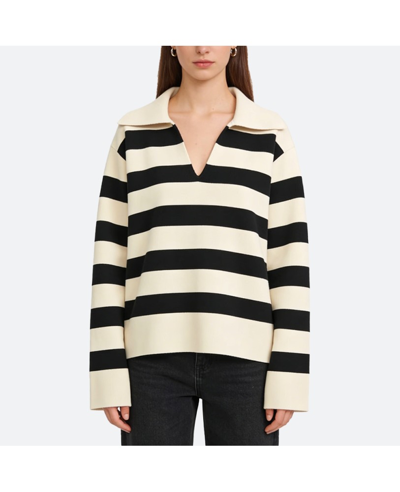 Classic Black and White Striped Pullover