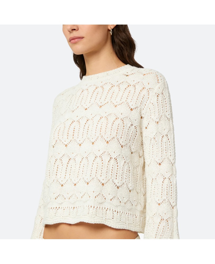 The body features delicate hollow-knit craftsmanship, adding refined elegance to every detail. The pure white tone paired with a minimalist pullover silhouette makes it effortless to exude sophistication. The subtle see-through pattern adds texture and visual lightness, enhancing the overall sense of delicacy.