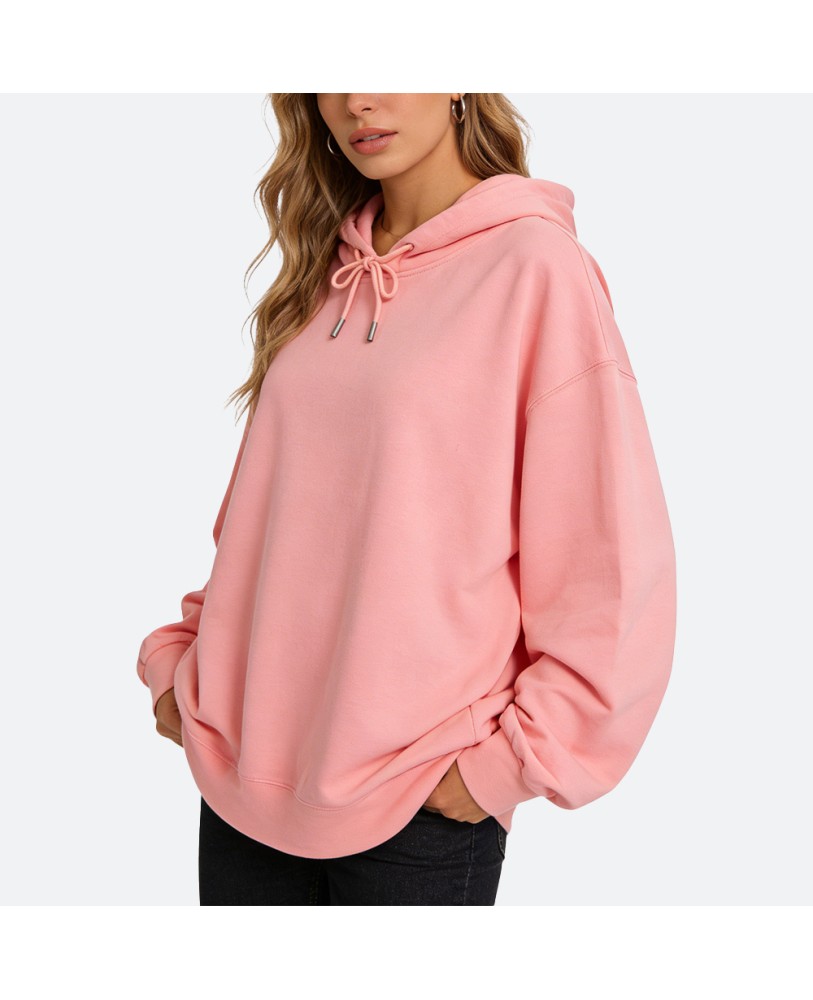 The hoodie features an adjustable drawstring, offering extra protection against wind while adding a casual and stylish touch. Its simple solid color design makes it versatile and easy to pair, suitable for home, outdoor activities, or casual outings.