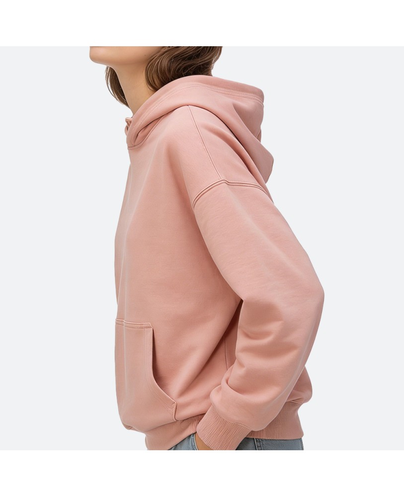 Classic solid color design for effortless versatility. Perfect for casual outings or at-home wear, it pairs seamlessly with any pants or outerwear. The hood adds both warmth and style, with adjustable drawstrings for a personalized fit.