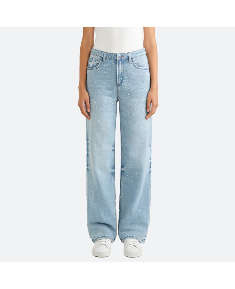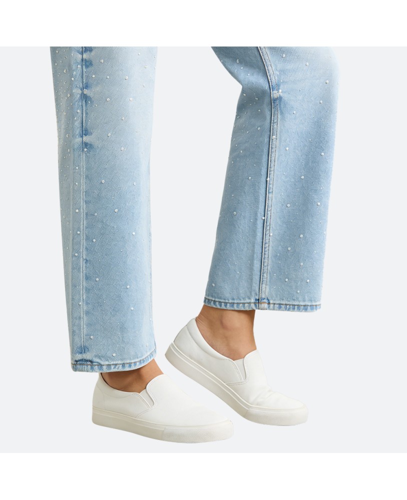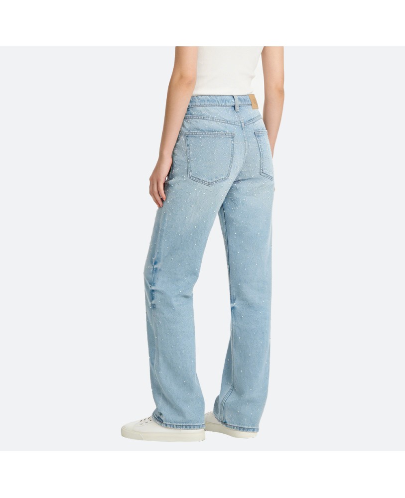 Delicate beaded embellishments add a refined touch of personality, giving the jeans a unique and elegant flair. This understated detail enhances the classic denim style, making it suitable for both casual outings and more polished occasions.
