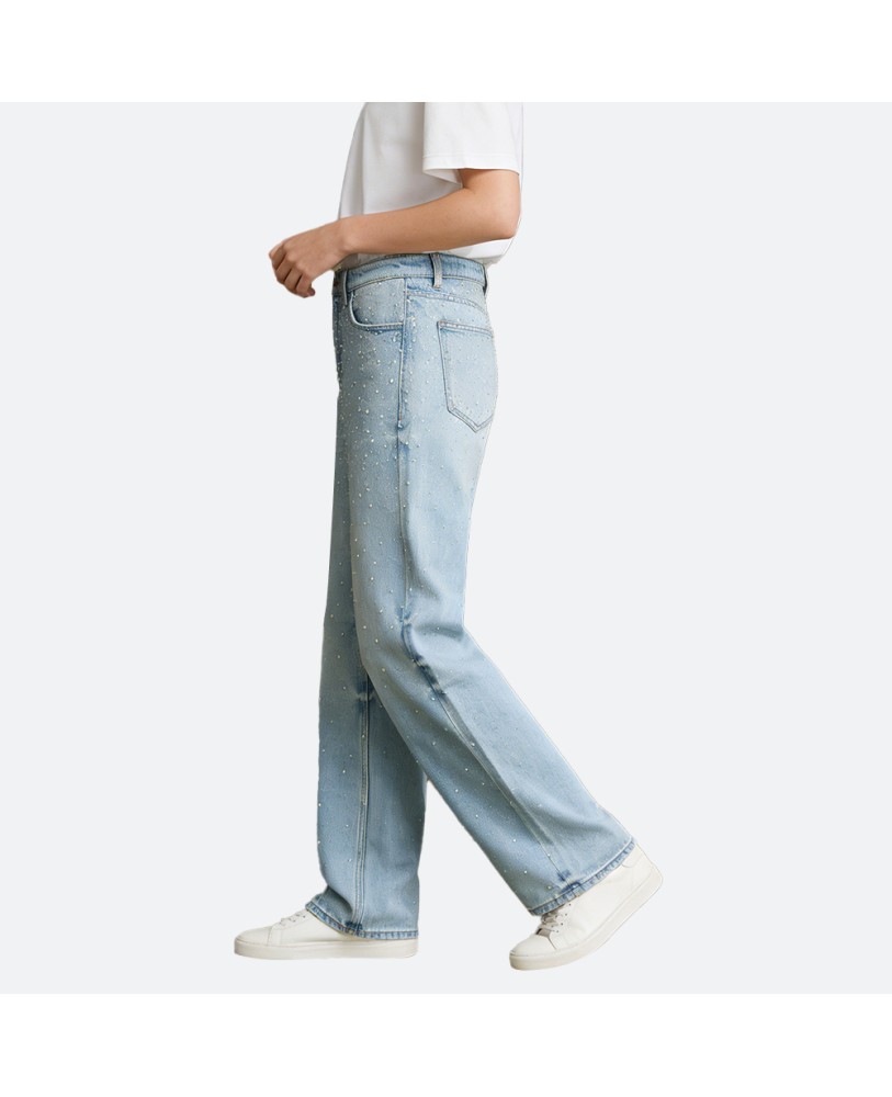 These washed beaded straight-leg jeans are crafted from a breathable, quick-drying polyester-cotton blended denim that combines comfort with durability. The fabric is soft to the touch, easy to care for, and fully machine washable—perfect for effortless everyday wear.