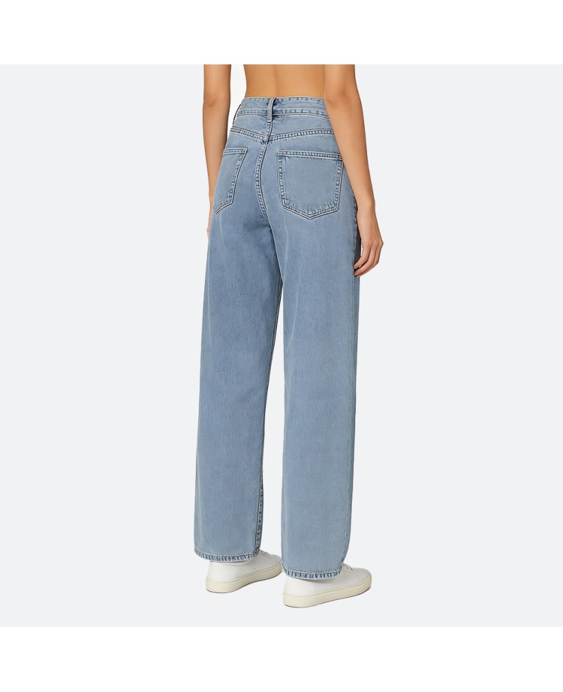 These high-waist washed jeans are crafted from premium cotton-polyester blended denim, offering breathability and quick-drying performance, making them suitable for all seasons. The fabric is comfortable, durable, and machine-washable for easy everyday care.