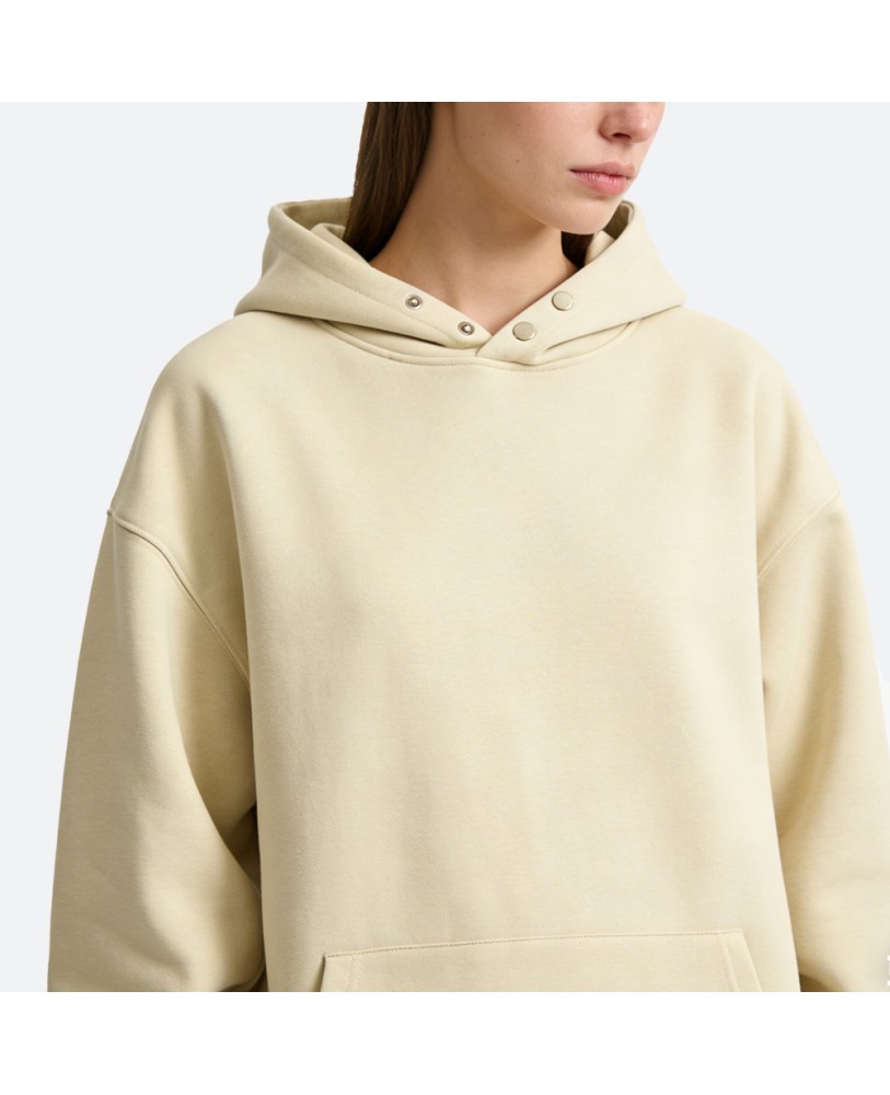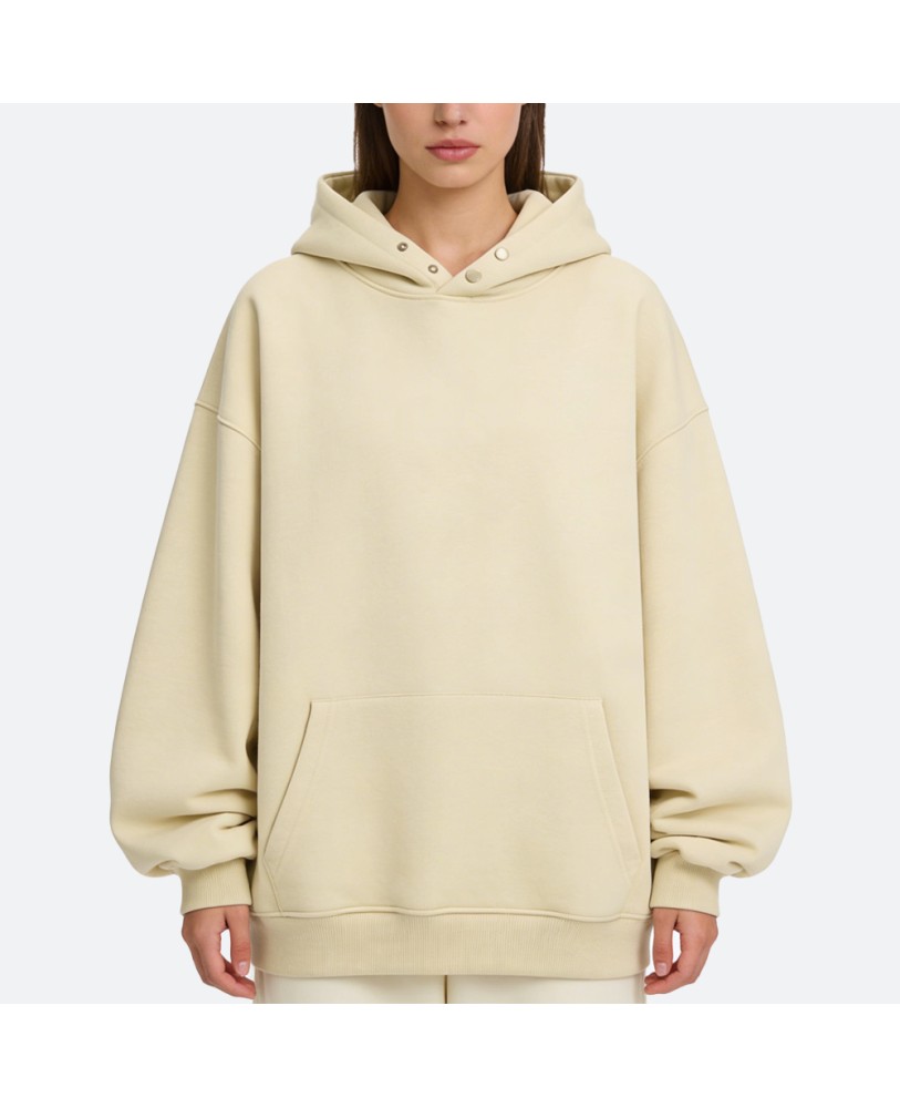 This solid color drop shoulder hoodie is made from high-quality pure cotton, offering a soft and skin-friendly feel for all-day comfort. The fabric is specially treated to be wrinkle-resistant and quick-drying, keeping you fresh and neat whether at home or on the go.