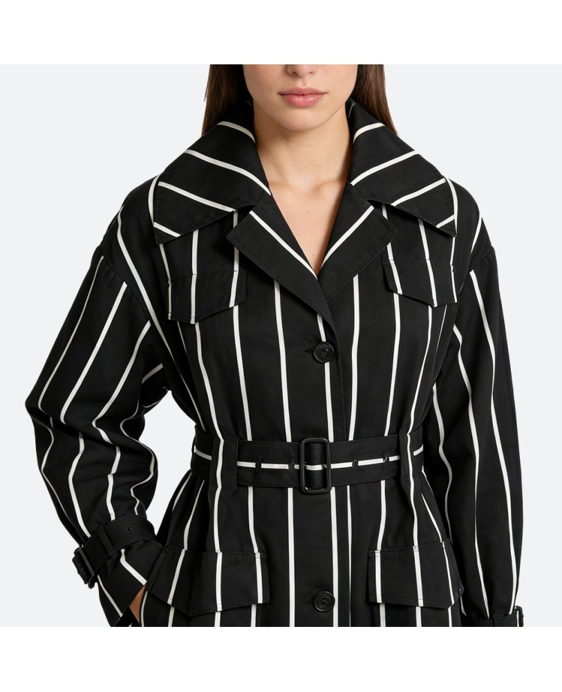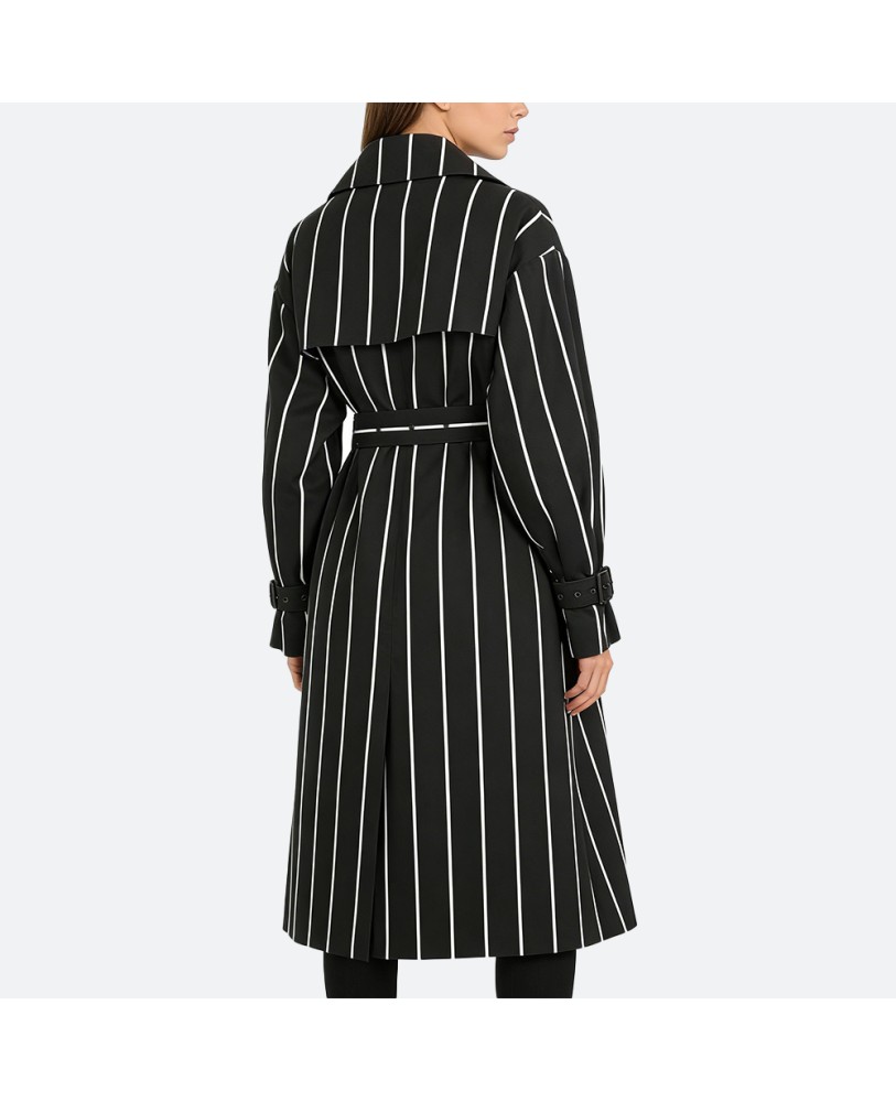 Thoughtful details in the design ensure a relaxed yet flattering fit, allowing ease of movement. It pairs effortlessly with skirts or trousers, offering a stylish appearance for various occasions. Whether for work, travel, or a leisurely stroll, this striped long trench coat is an ideal choice that radiates confidence and charm.