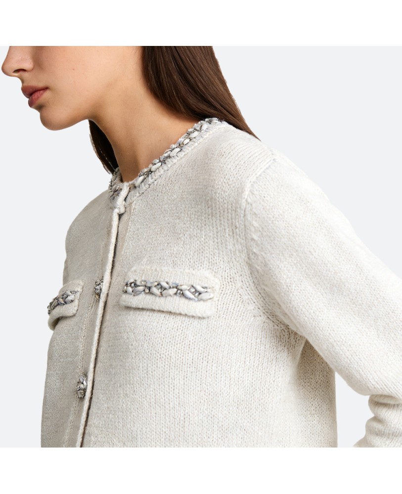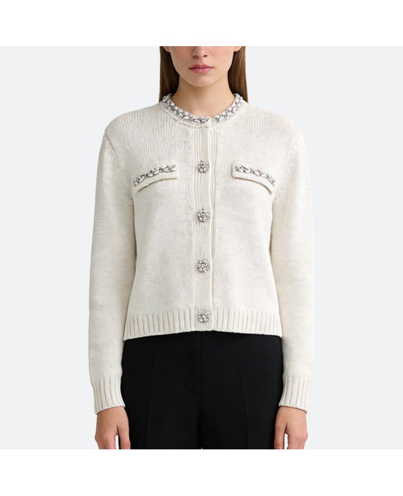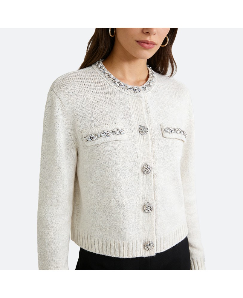 Expertly crafted with delicate jacquard knitting, the texture is rich and refined, adding a touch of vintage sophistication with a modern aesthetic. The open-front design allows for easy layering—pair it with shirts, dresses, or high-waisted trousers for a variety of stylish looks. With a tailored fit and thoughtful cut, it flatters the silhouette and creates a naturally elegant shape.